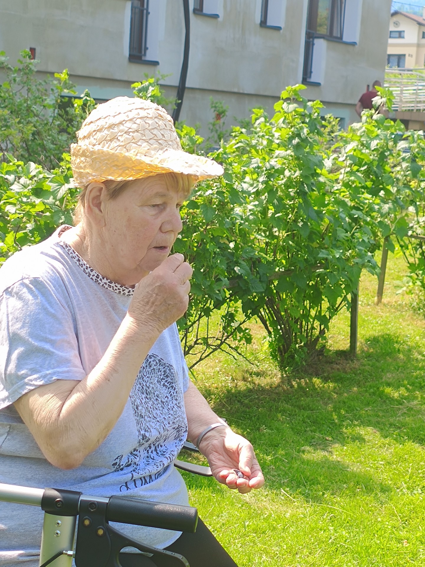 Wspólne zbieranie owoców w sadzie ma same zalety. Seniorzy spędzają aktywnie czas na świeżym powietrzu, łapiąc promienie słońca i ciesząc się miłym towarzystwem. Czerpią radość i satysfakcję z tego, że zrobili coś dla wszystkich, a w dodatku potem mogą zjeść swoje zbiory na deser. Tym razem wybrali się na jagody kamczackie, które wzmacniają odporność, działają przeciwzapalnie, regulują poziom cukru we krwi oraz ciśnienie. A przede wszystkim wyśmienicie smakują!