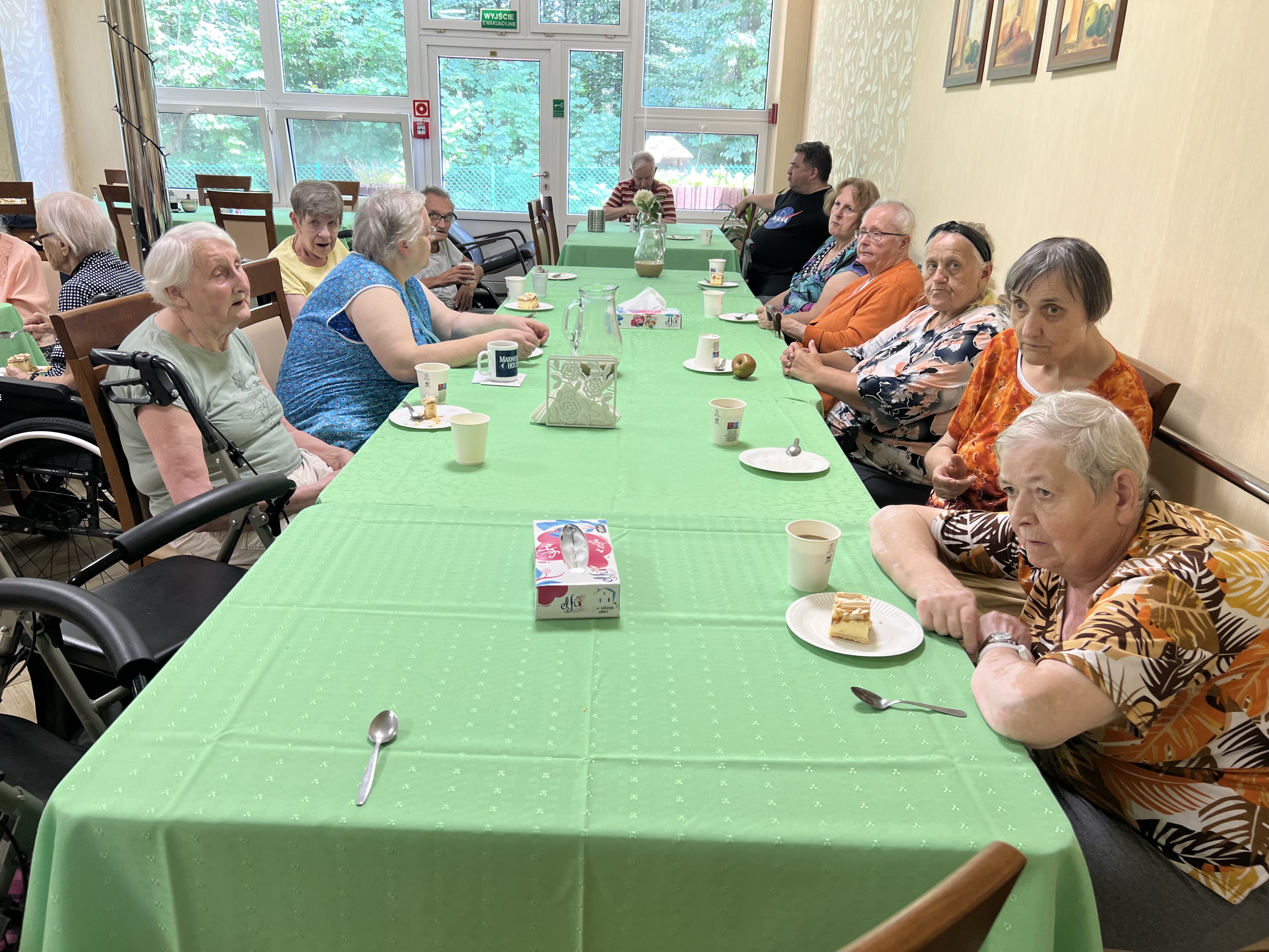 Spotkania urodzinowe są już w naszym domu tradycją. Tym razem to miłe wydarzenie doczekało się także oprawy muzycznej. Jeden z naszych domowników – pan Arek – który dawniej prowadził spotkania muzyczne, z tej okazji przygotował autorską wersję programu „Jaka to melodia?”. Zaprezentował szereg nagrań, a także ciekawostek i anegdot dotyczących zespołów i artystów sceny muzycznej. Może stanie się to nowym urodzinowym zwyczajem?
