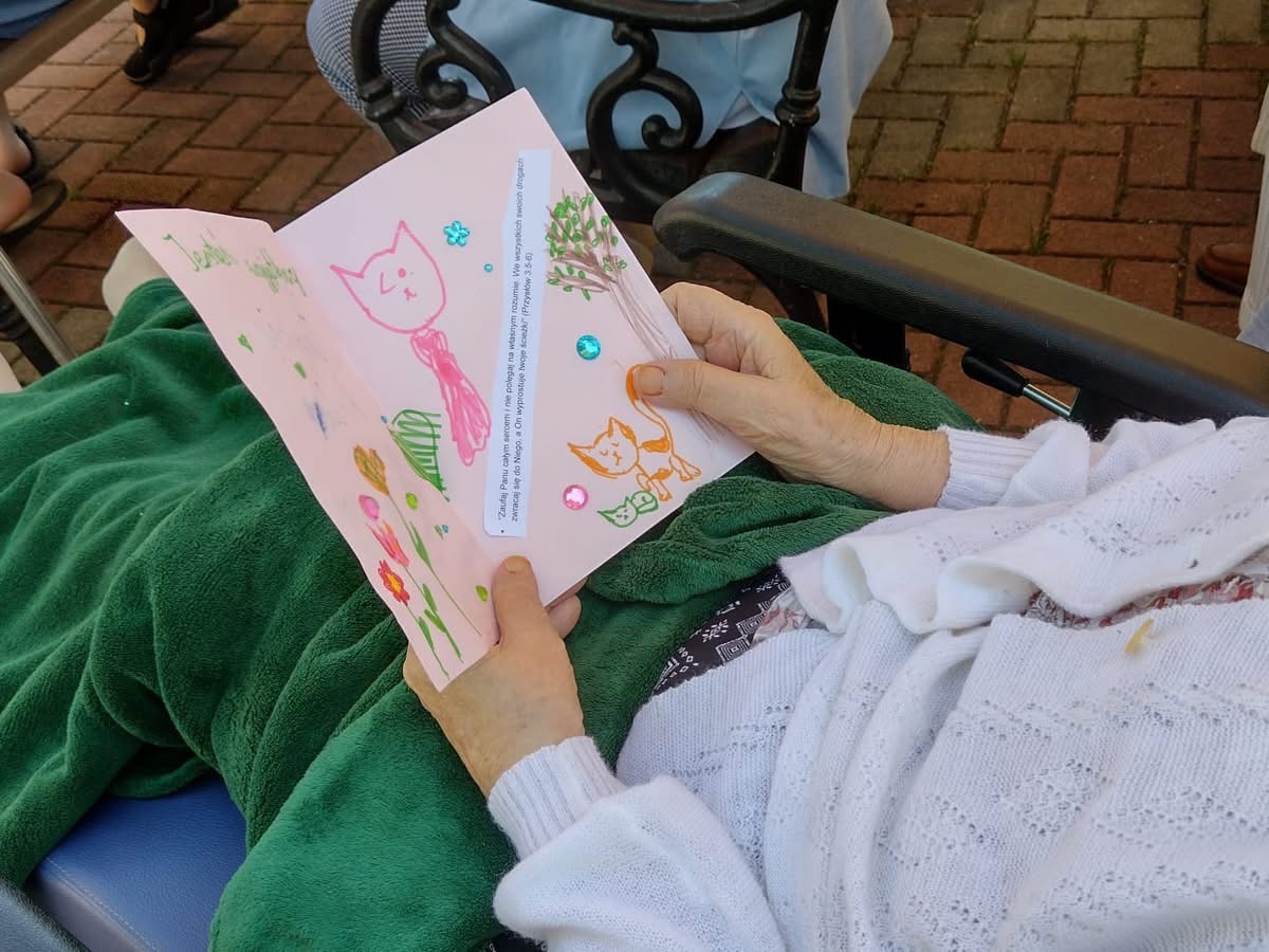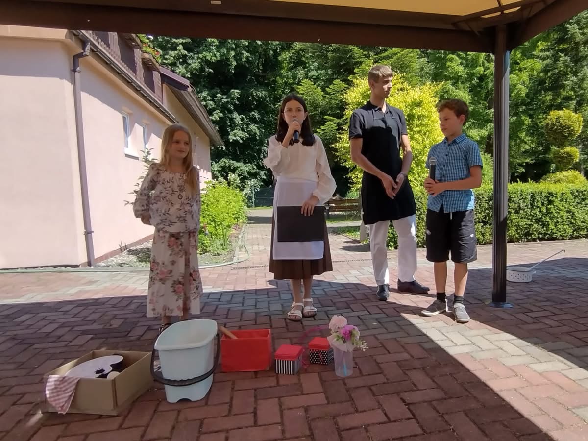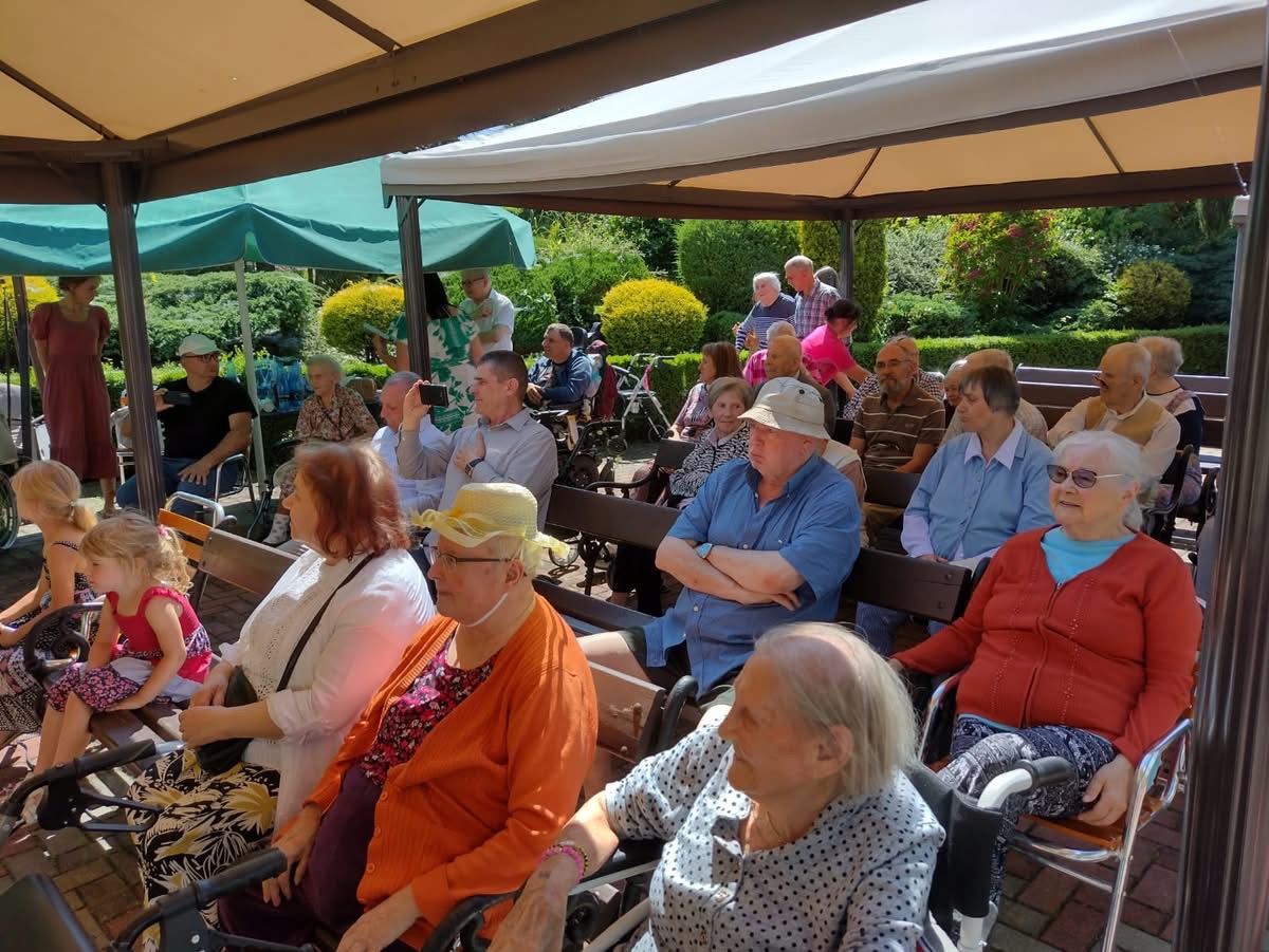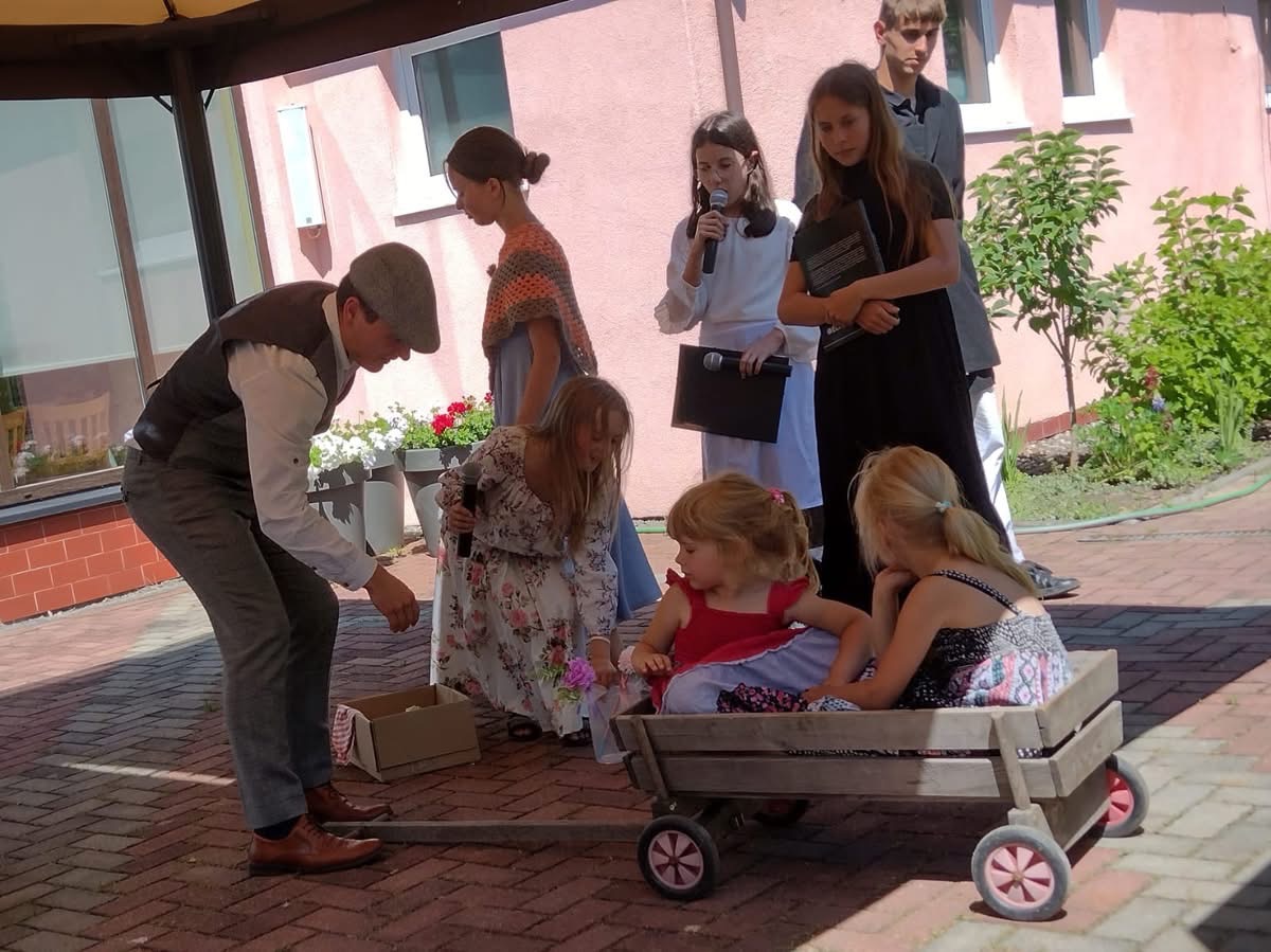 W sobotę 14 czerwca gościliśmy grupę dzieci i młodzieży z Kościoła Chrześcijan Dnia Sobotniego z Brennej. Goście zaprezentowali naszym podopiecznym przedstawienie złożone z różnorodnych scenek i utworów muzycznych, dzieląc się swoimi pasjami i talentami. Ponieważ pogoda była piękna, występy odbyły się na świeżym powietrzu. Później wykonawcy odwiedzili w pokojach tych seniorów, którzy nie mogli przybyć do ogrodu, i zaśpiewali im podnoszące na duchu pieśni. Domownicy otrzymali też w prezencie od gości ręcznie robione kartki z pokrzepiającymi sentencjami.