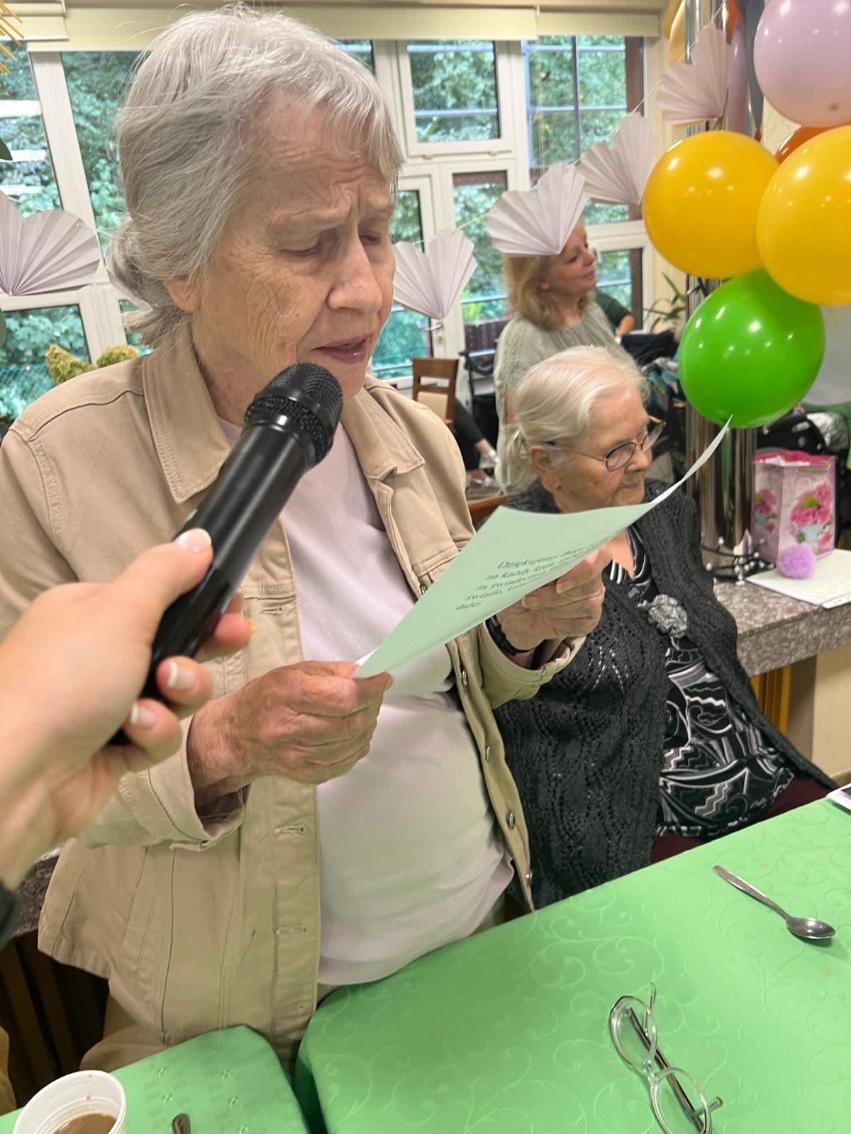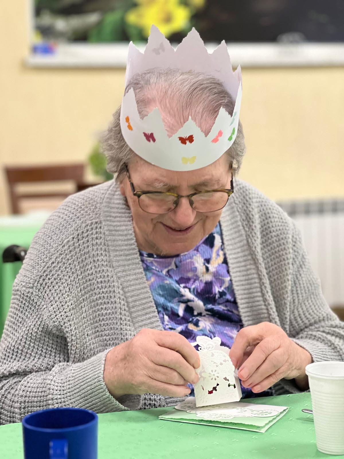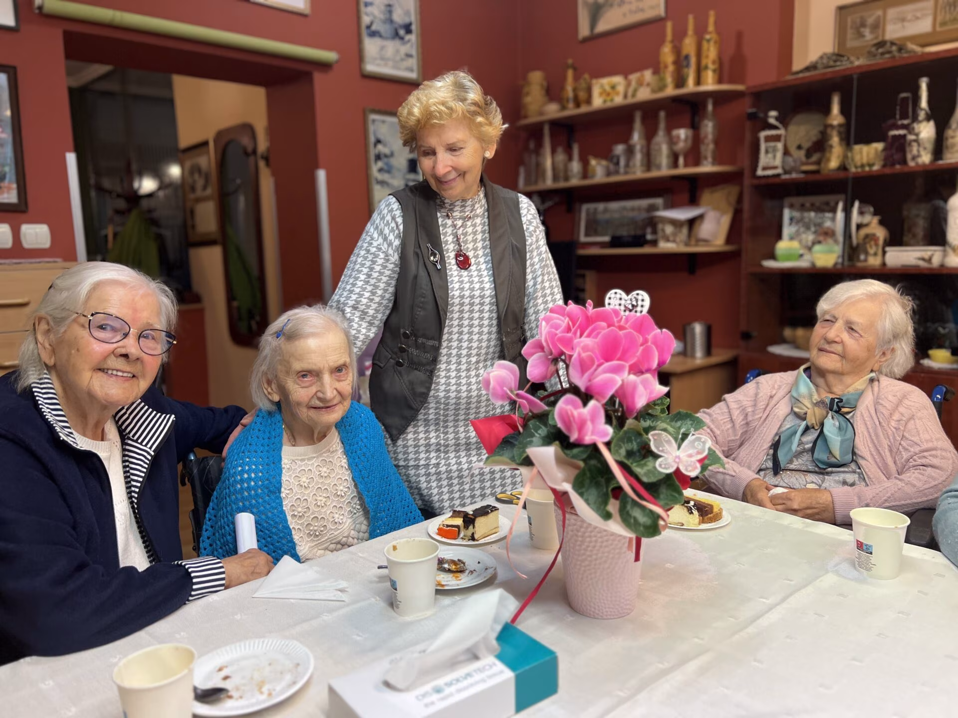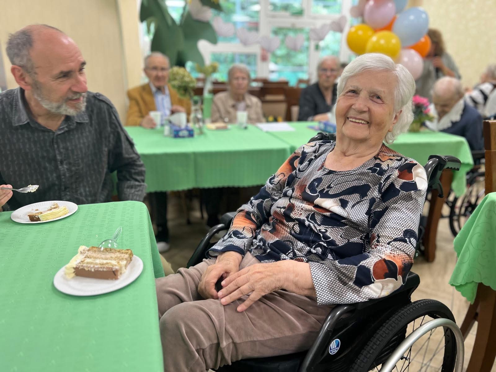 Wrześniowe spotkanie urodzinowe było wyjątkowe z kilku powodów. Po pierwsze w gronie solenizantów znalazła się mieszkanka obchodząca 101. urodziny, a po drugie wrócił do nas jeden z domowników, który przez kilka miesięcy przebywał w szpitalu – teraz ponownie mógł uczestniczyć we wspólnym świętowaniu. Tradycyjnie były papierowe korony, tort i mnóstwo życzeń. Odczytano także wiersze okolicznościowe i wszyscy wspólnie zaśpiewali pieśń Jezus mym przyjacielem
